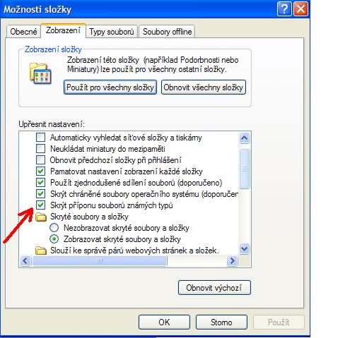 Přípony souborů - nutno odškrtnout v Možnosti složky, viz. screen:
