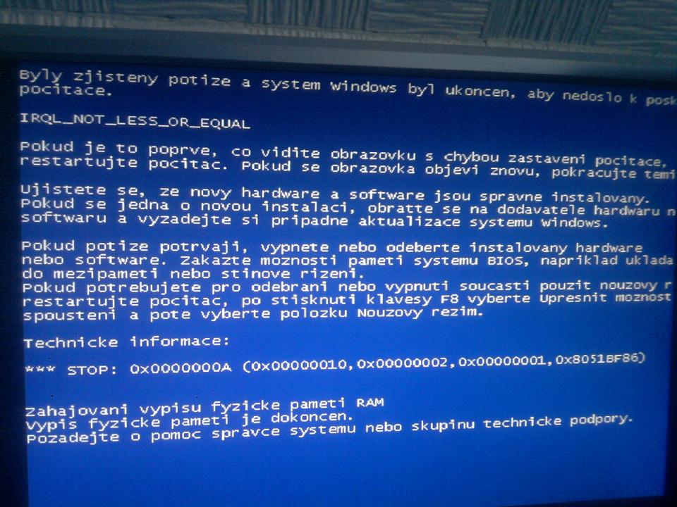 ->Při instalaci ovladače na grafiku vyskočila jiná modrá smrt ->