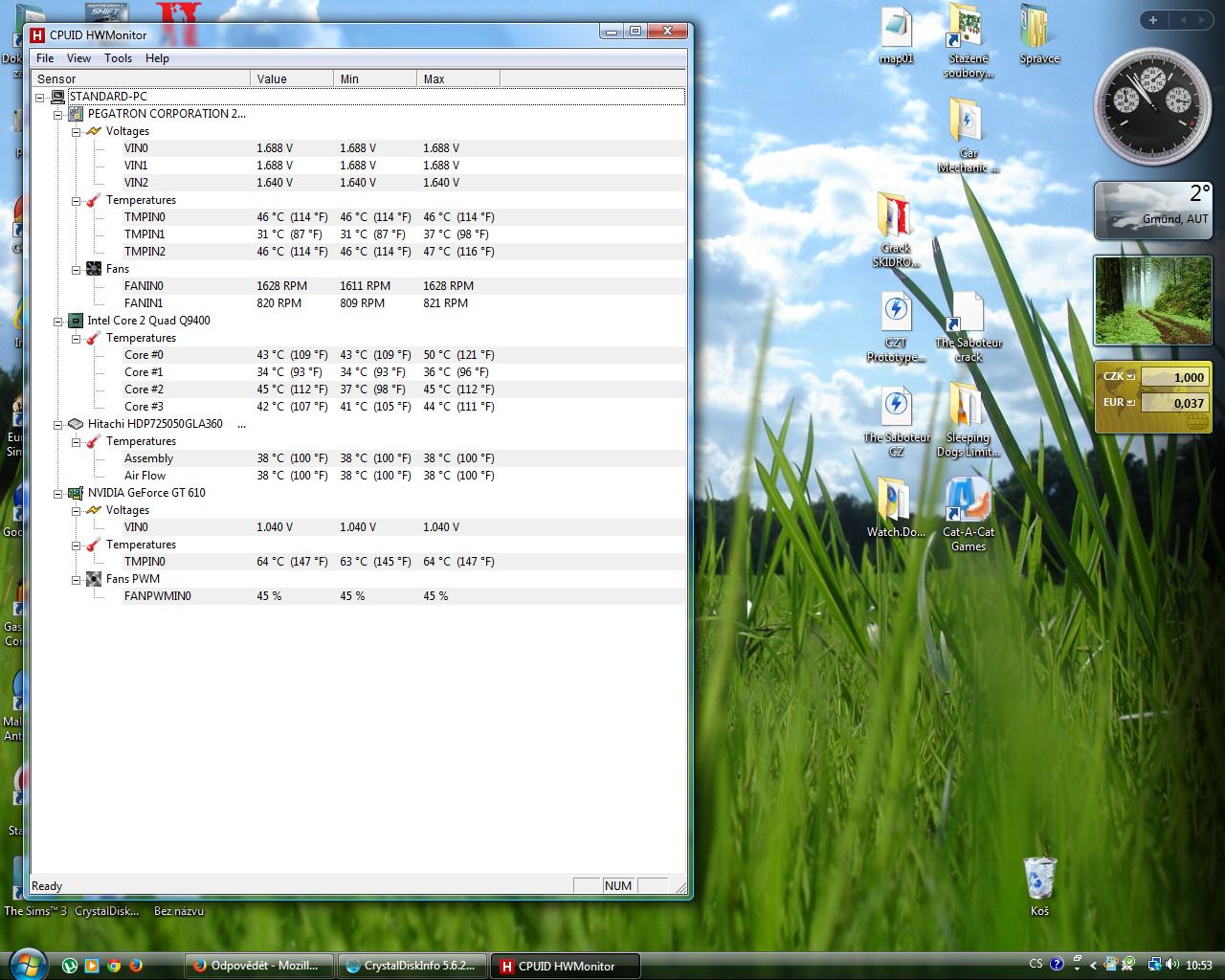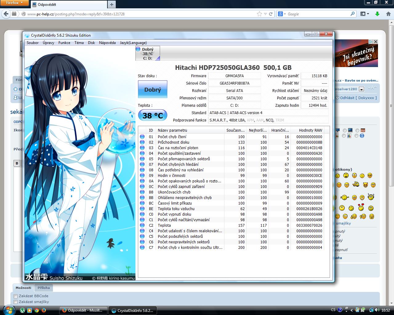 Potom udělej screen z programu Crystal Disk Info - a i z toho sem dej screen, koukneme se jak je na tom pevný disk.