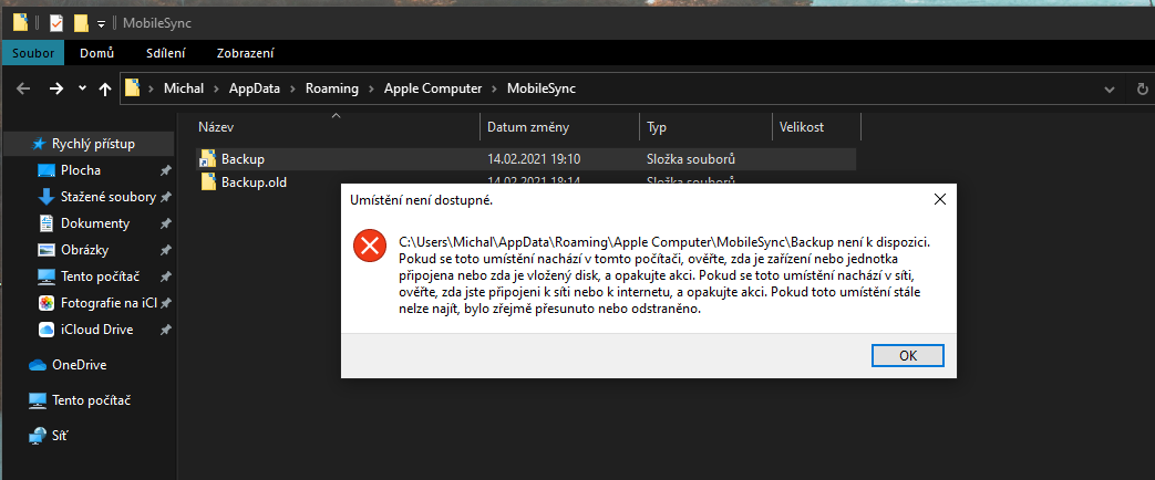 Tak nevim ted se mi tam ta složka podle toho navodu udělala ale je nepoužitelná, backup old jsem přejmenoval já podle toho návodu, je to ta původní složka kde je ta zaloha