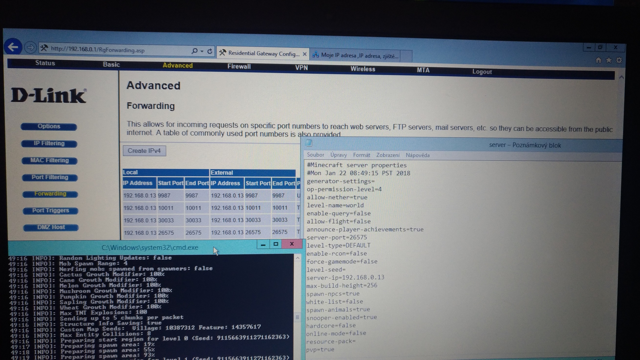 Jojo. Jsem právě došla domů. Nej.CZ mi zapojilo konečně veřejnou IP adresu ale nedaří se mi to nakonfigurovat do Minecraftu atp neporadil by někdo ?
