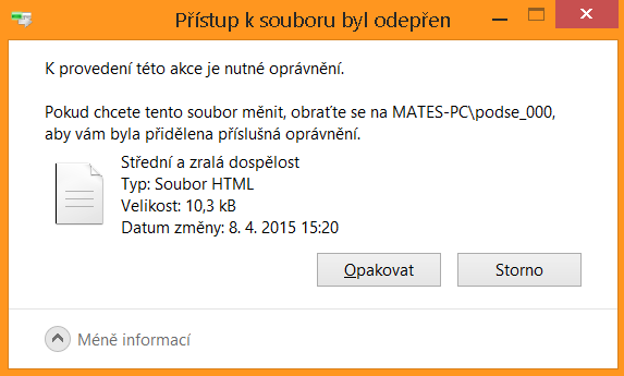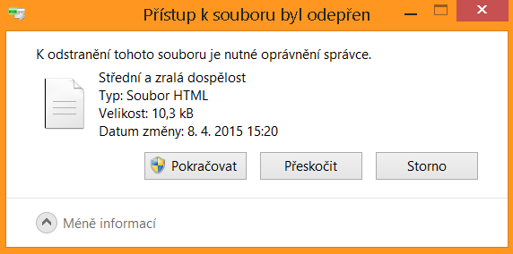 Reakce systému, když se pokusím soubor smazat: