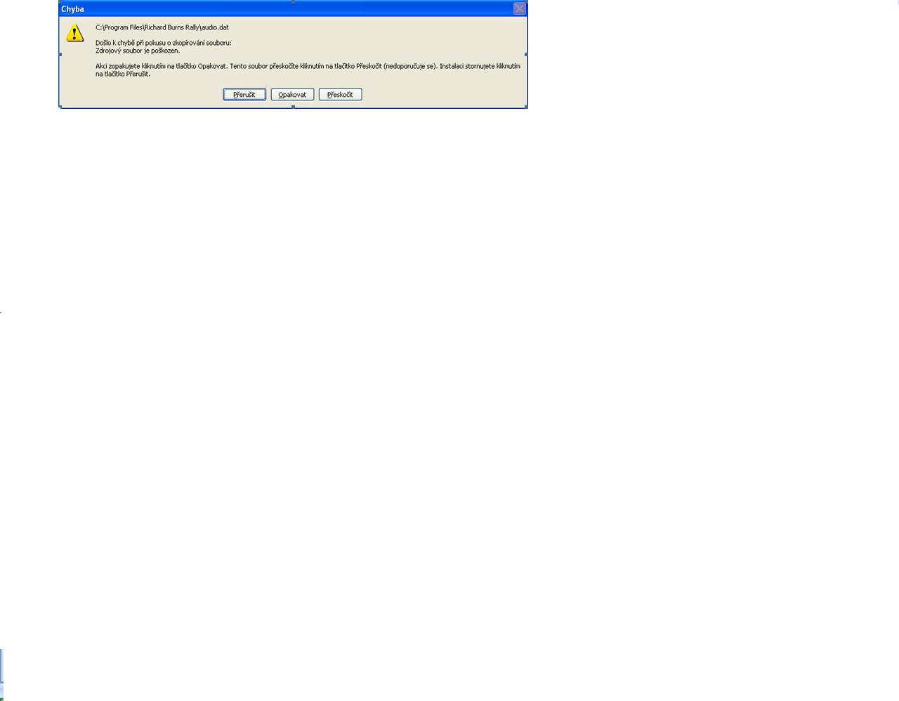 Dobrý den mám následující problém při jákékoliv instalaci nebo spíše instalaci, která má větší velikost office , nero ,stalker , mafia...... mi to hlási třeba v půli instalace při kopírování nových souboru chyba kontroly dat (crc) upozornuji že vše je legální ...... tak nevím zde jsou tychybové hlášky vyfocené