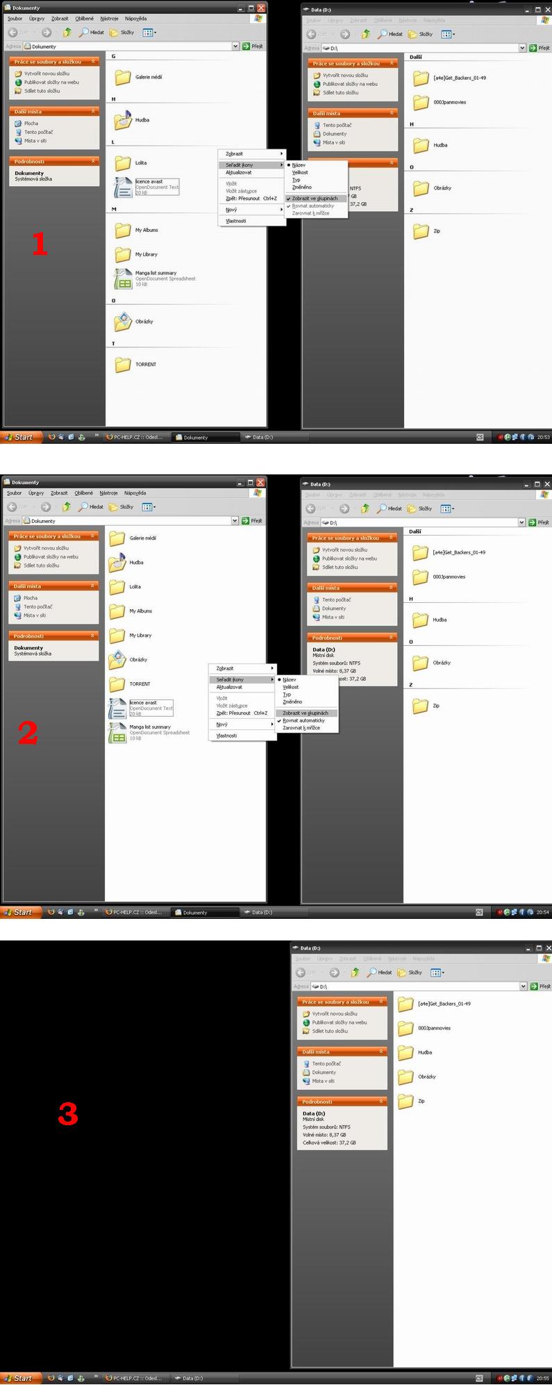 Když v Dokumentech (C:\Documents and Settings\PC\Dokumenty) změním nastavení zobrazení složky (Zobrazit ve skupinách, Vedle sebe apod.), tak se mi úplně rozhodí zobrazení disku D:/. Nemáte ponětí co s tím?