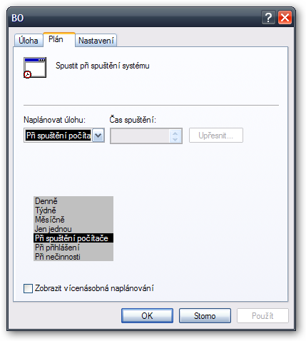 rovnou do widlí. Dávám sem screenshot. Jiné aplikace jdou naplánovat. Tenhle script se nespustí. Hodí