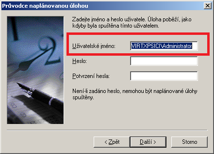 ITCrowd píše:No. Takže tam máš účet voyager a zjevně bude bez hesla => to, co ti to píše: Není-li zadáno heslo, nemohou být úlohy spuštěny. Systém se tedy chová správně.