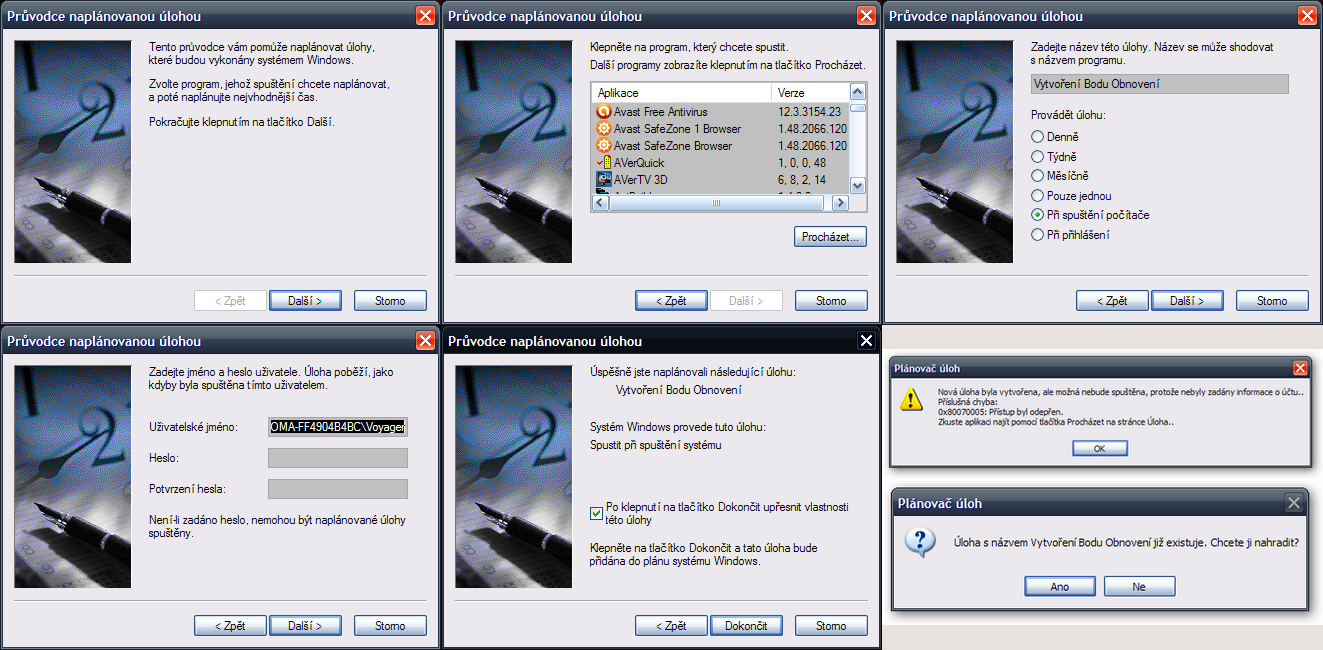 Bod obnovení a naplánovaná úloha Vyřešeno