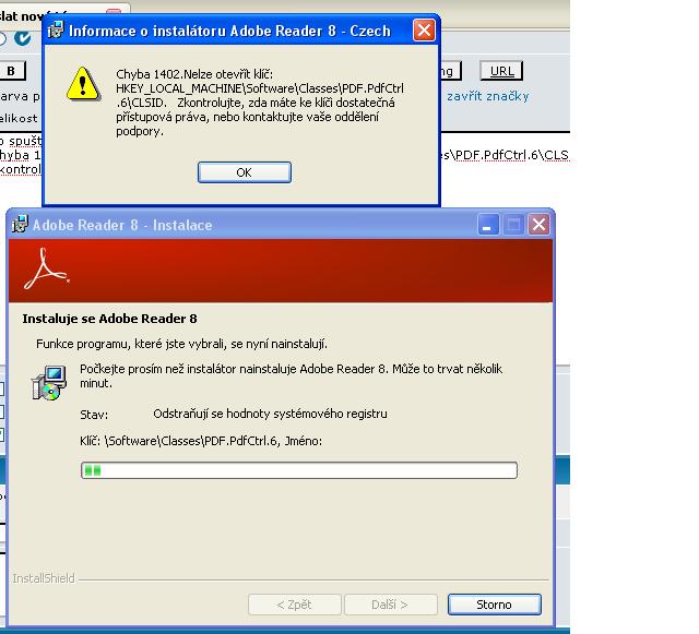 Chyba 1402. Nelze otevřít klíč: HKEY_LOCAL_MACHINE\Software\Classes\PDF.PdfCtrl.6\CLSID