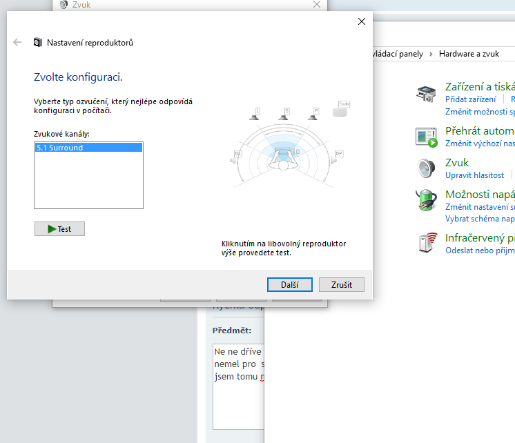 Pokud se při testu v nastavení zvuku ozývají všechny reproduktory, pak je problém ve zvukové stopě filmu.