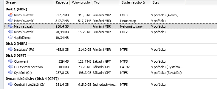 koupil jsem si do NASu nové disky a ty stávající bych chtěl použít v PC jako další pomocná uložiště. Na jednom disku mám data, která potřebuji (ten oddíl co je označen na obrázku v příloze) ale při přiřazení písmena jednotky danému oddílu (ten největší) se nic neděje. V acronisu se svazek jeví jako nenaformátovaný. Je nějaká cesta, jak z toho vybruslit aníž bych musel disk vracet do NAS a vše složitě a zdlouhavě přetahovat po LAN?