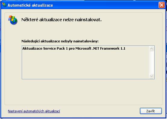 tohle dela spouste lidi, takze nejlepsi co Ti mozu doporucit... podivej se do svych aktualizaci jestli tam nemas bud Net framwork 1.1. czech language pack nebo neco jako Hotfik pro Net framework 1.1, w obou pripadech to odinstaluj.