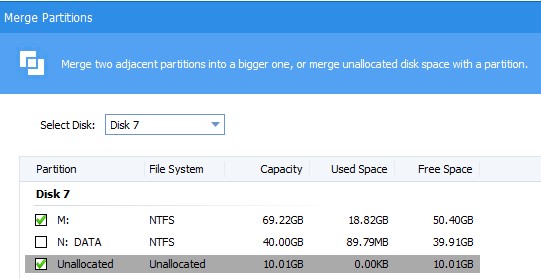 AOMEI priradí nepriradené miesto k C ,cez ponuku Merge Partitions.Najlepšie z USB kľúča cez boot.