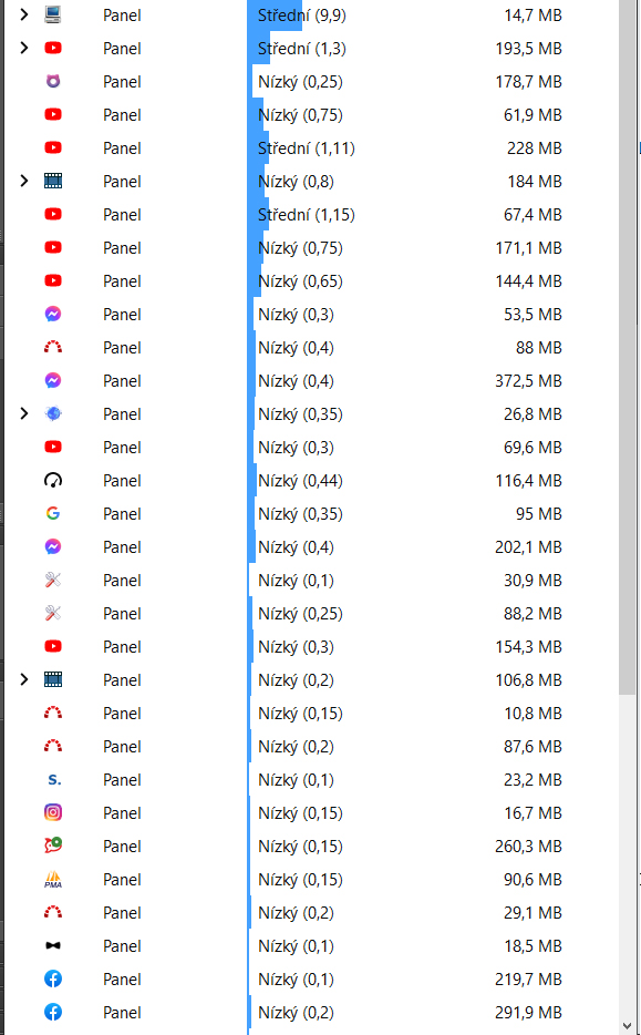 Firefox případně umí všemožné performance reporty apod. Jestli screenshot chápu dobře, tak panely využívají tak 20 %, doplňky tedy téměř nic (jsou na konci tohoto seznamu jako téměř neaktivní).