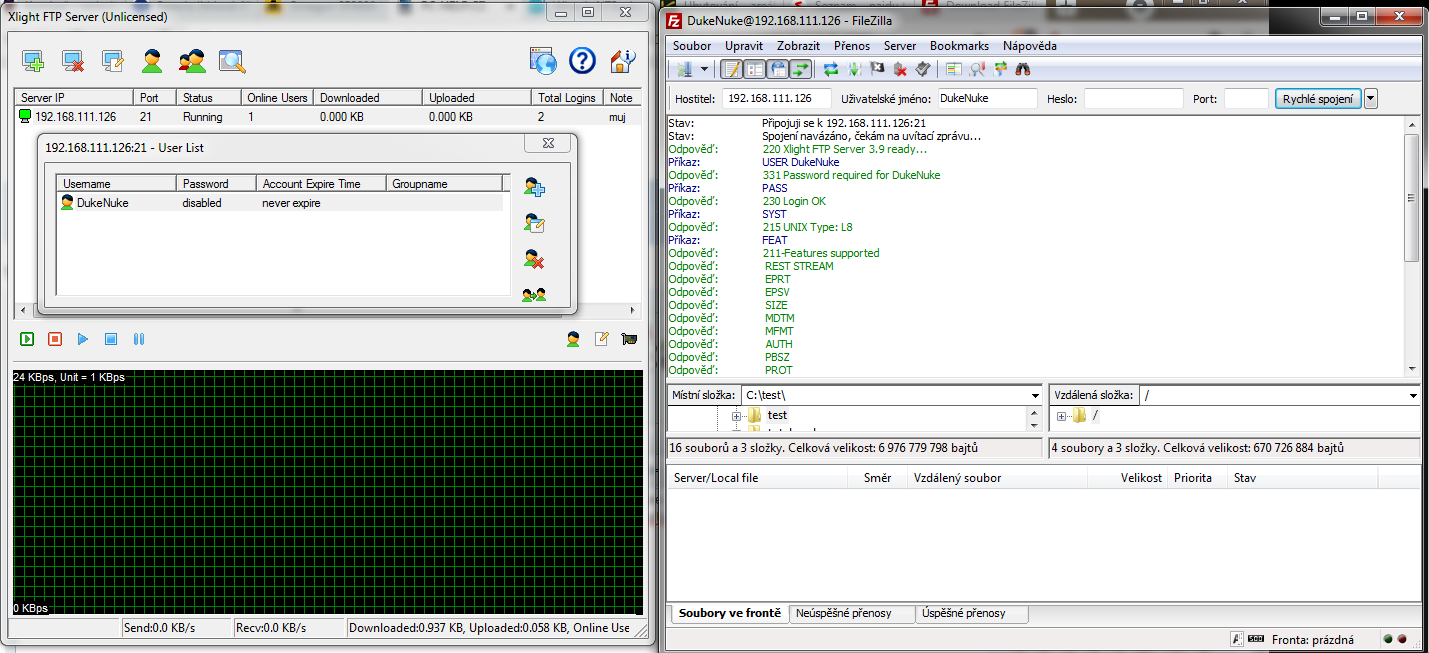 Další používám pro přenos dat mezi virtuálními stroji, např. virtuální W98 neumí zacházet se síťovými disky s vyšší verzí samby, ale ftp přenos funguje. Tady používám xlight, je free pro osobní užití, jednoduchý na nastavení, rychlý a nezatěžuje systém.