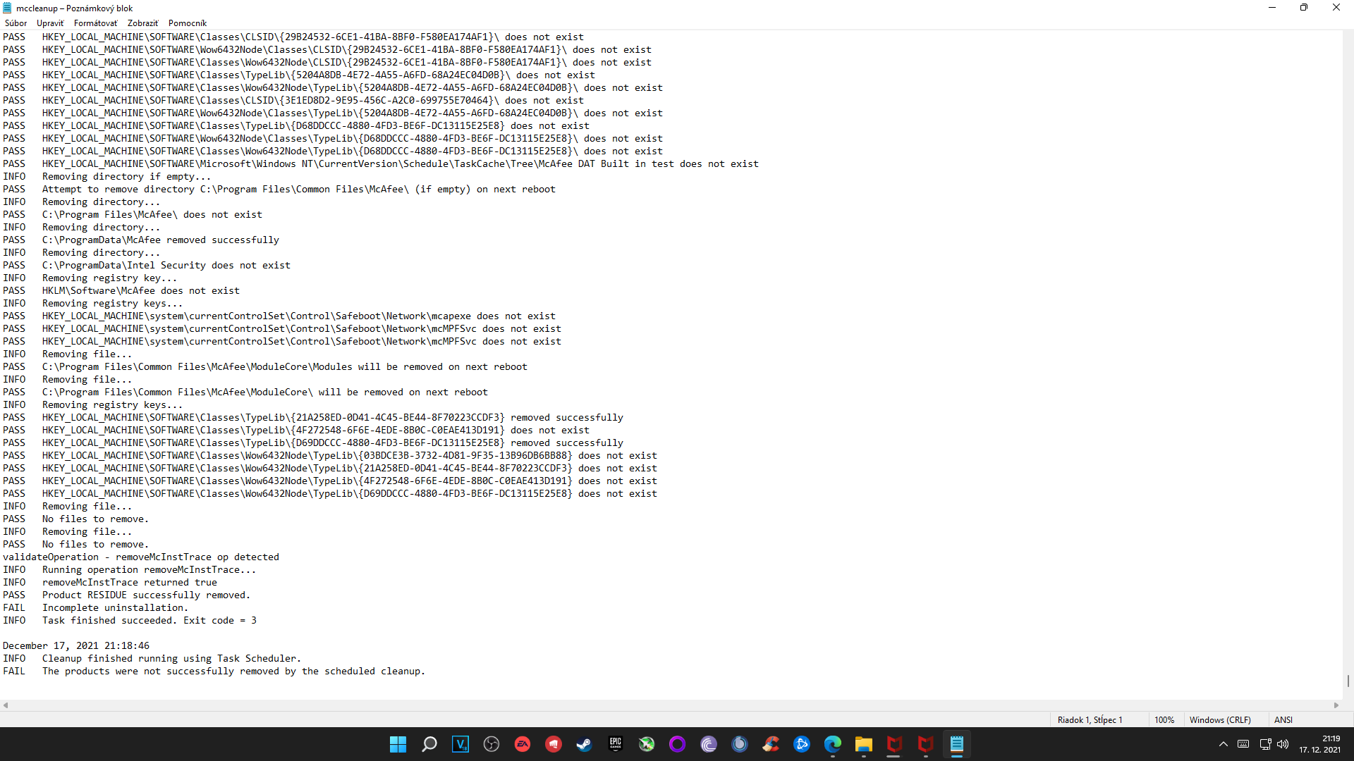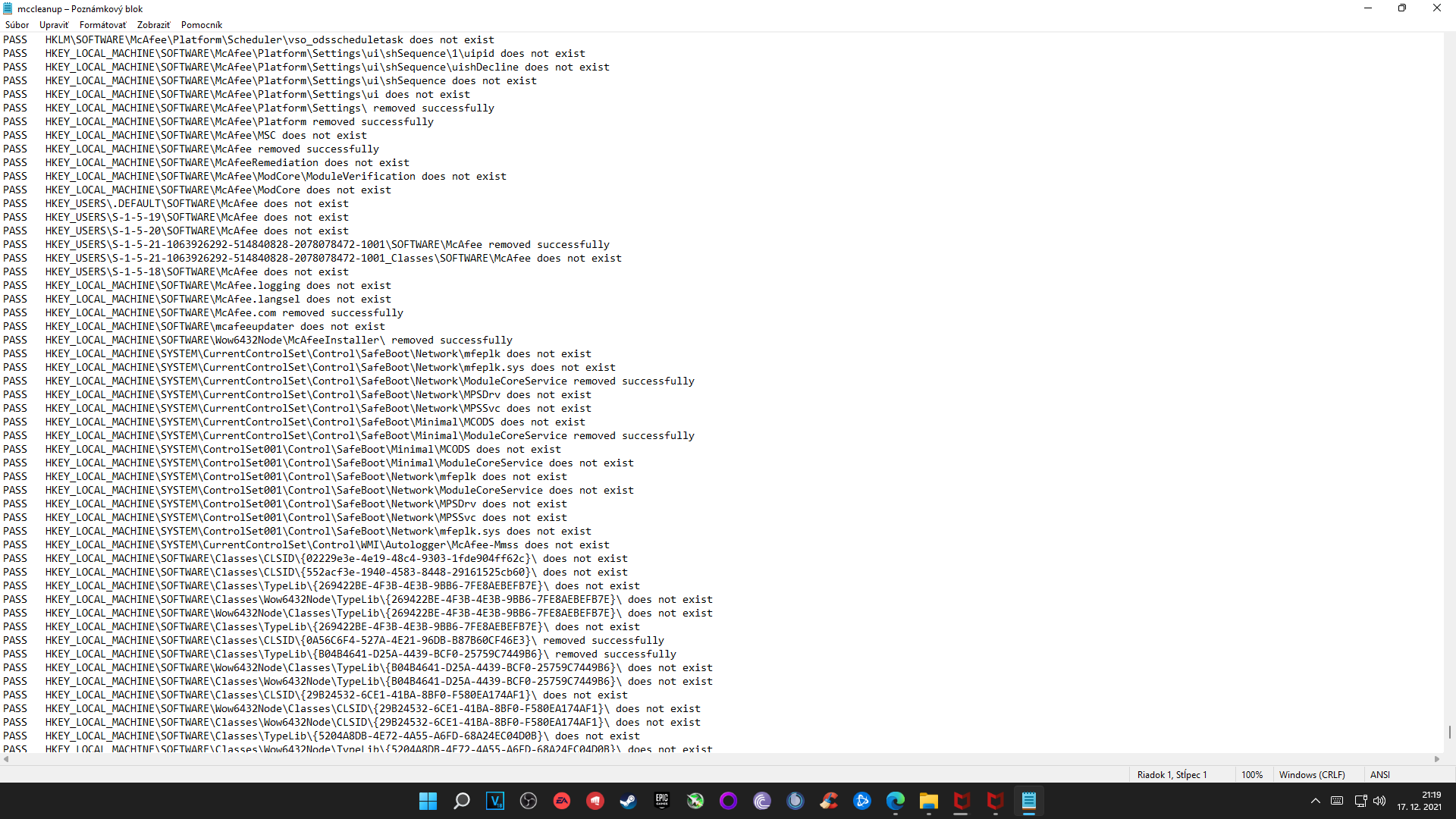 ne, to jsem na mysli neměl. To co jsem myslel, by se objevilo, pokud by Revo tem McAfee našel.