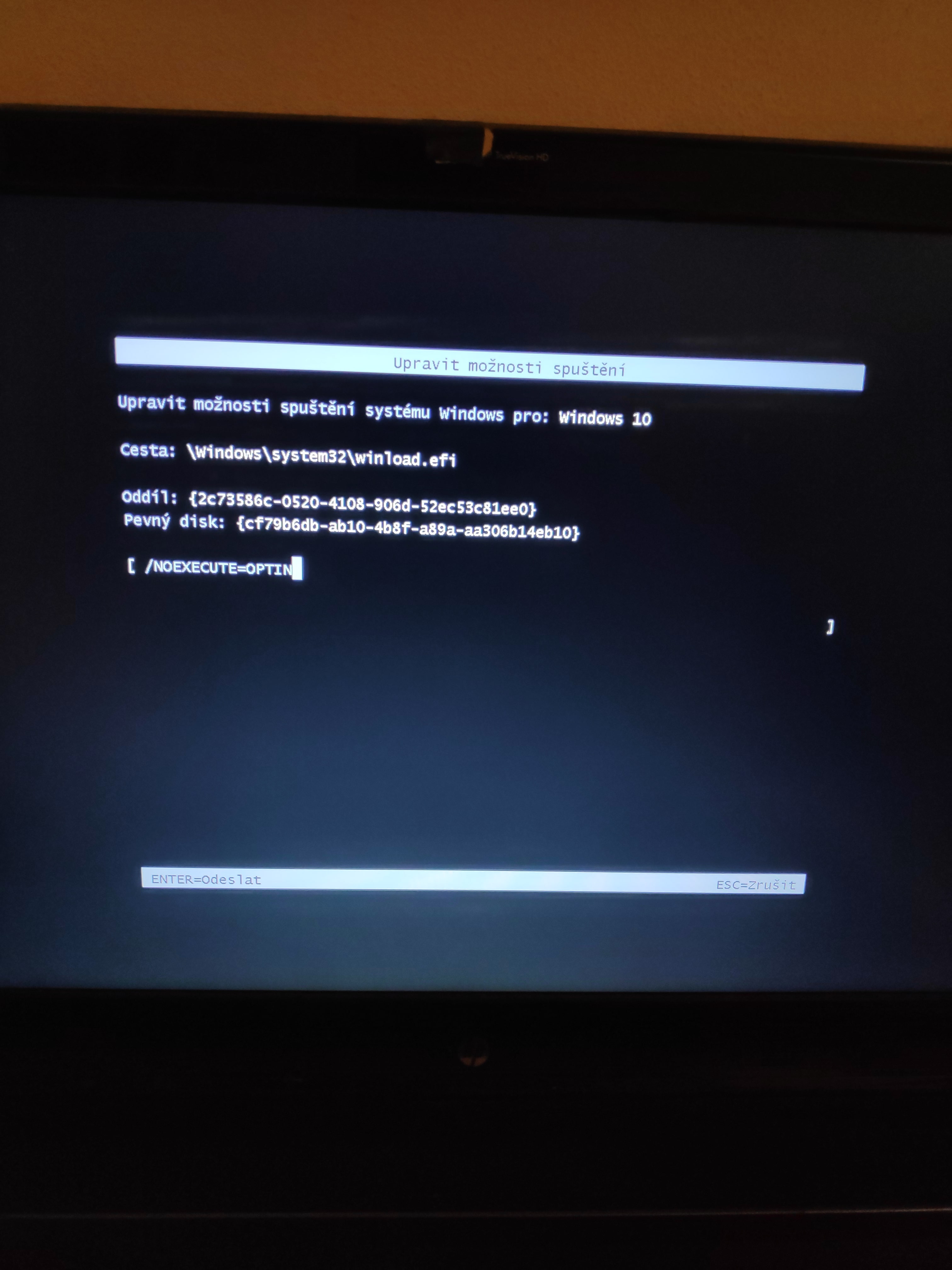 Zkontroluj ze skutecne mackas funkcni klavesy. U nekterych HP notebooku je treba pouzit FN aby to skutecne bylo F10.
