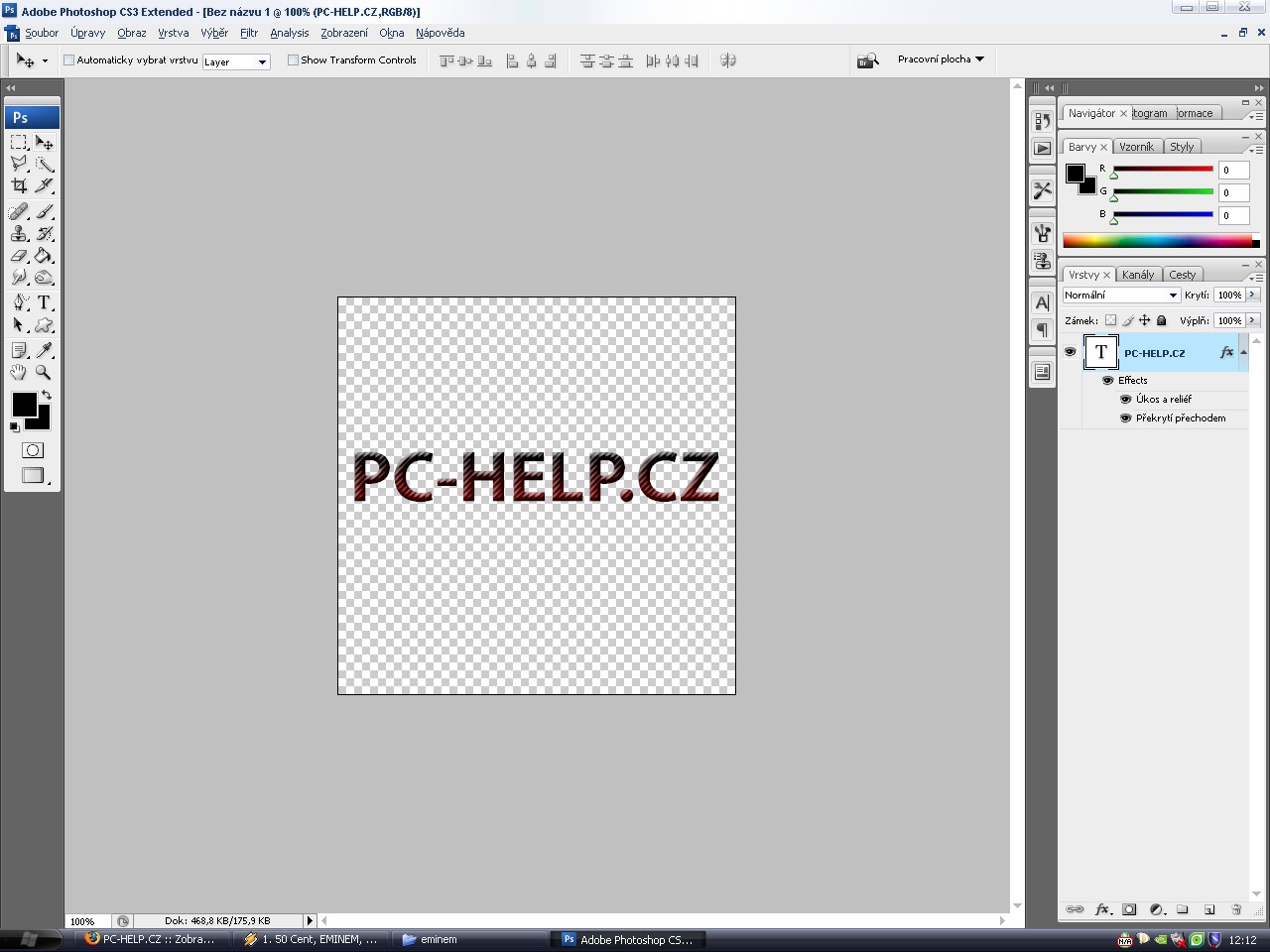 mam dotaz,jak udelat ve Photoshopu pismo bez pozadi.Napriklad ve Counter strike source,kdyz si udelam spray logo a striknu ho na zem nebo na zed,chci aby sel videt jenom samotny text bez zadneho pozadi.