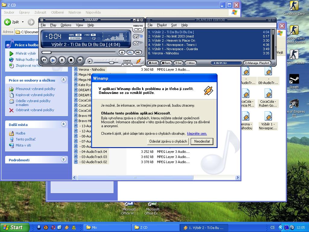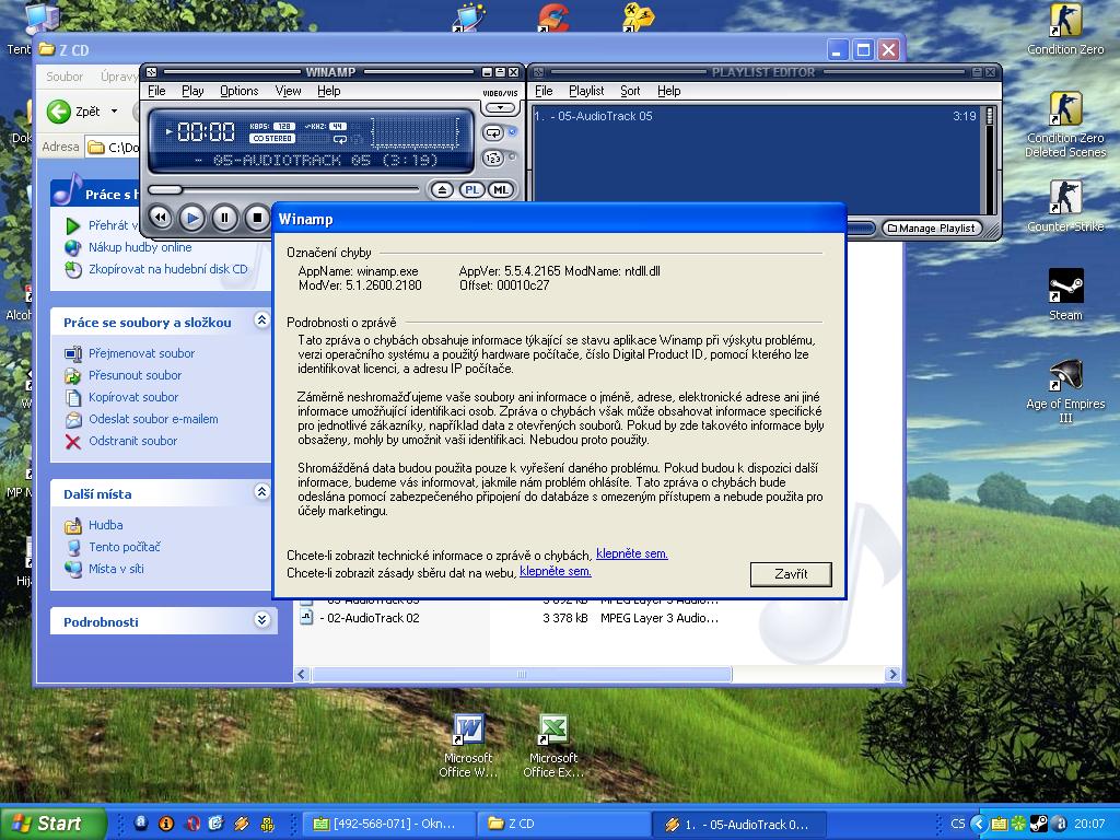 . Ukazuje mi to při každém zpuštění písničky. Včera to udělalo jen sem tam (to mi nevadilo) ale ted si poslechnu jen asi 5s z písničky winamp Vyřešeno