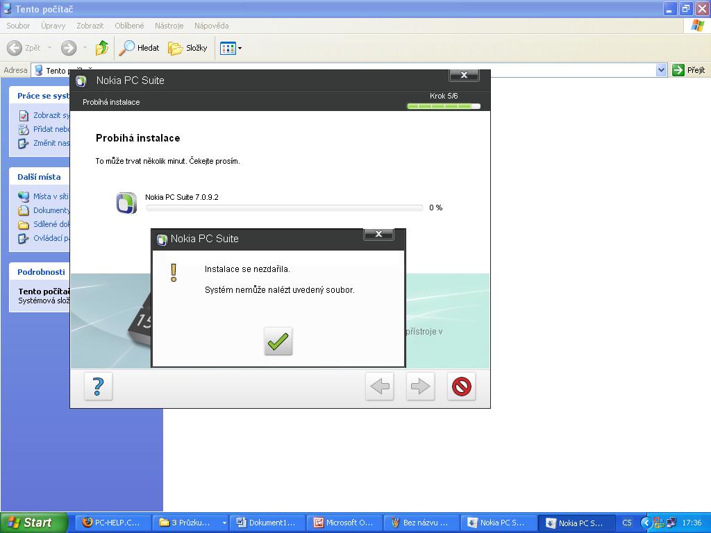 zdravím mám problém s instalaci nokia pc suite, u každé verze kterou stáhnu a začnu instalovat mi při průběhu instalace naskoří chyba: instalace se nezdařila, system nemuze najit uvedeny soubor.