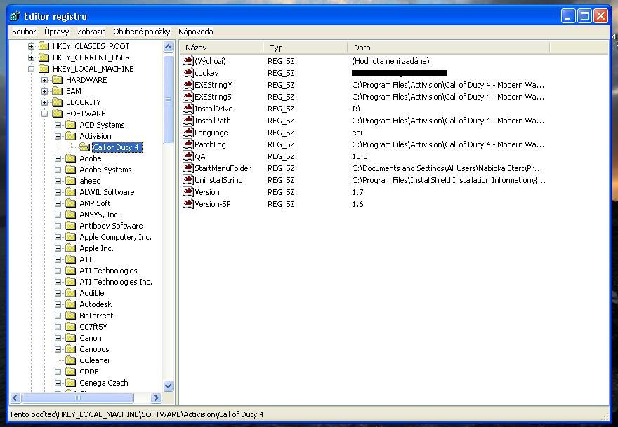 Ahoj. Jen tak ze zvědavosti jsme se podíval přes Start - Spustit - regedit do registrů v HKEY_LOCAL_MACHINE - SOFTWARE a zjistil jsem, že jsou tam "zbytky" programů i her, který už jsem odinstaloval před nějakou dobou. Zajmalo by mne, jestli to můžu bez problému smazat. Třeba například celou složku Activision(viz. příloha), která tam nejspíše zůstala po neúplné odinstalaci CoD4. Nebo existuje nějaký software, který to dokáže vymazat bezpečně sám? Používám Ccleaner + Advenced System Care na čištění registrů, ale tohle nikdy nesmažou. Předem díky za reakce.