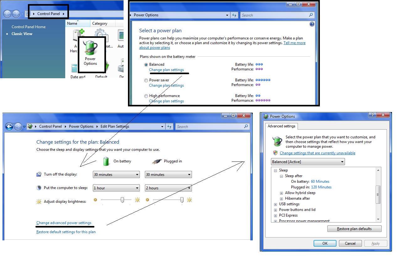 - v zaklade mas pred-nastavene rezimy, ktere umoznuji/zarucuji kvalitu/vydrz baterie a kvalitu zobrazeni s ohledem na kvalitu a nebo vydrz (v pripade stolniho PC ptom nejde o baterii, ale o nastaveni co se s komplem deje pri zapojeni kabelu, tj. odpada moznost A, co se stane pri chodu na baterii / B, co se stane rpi chodu na el.kabel)