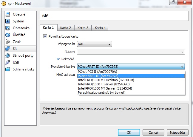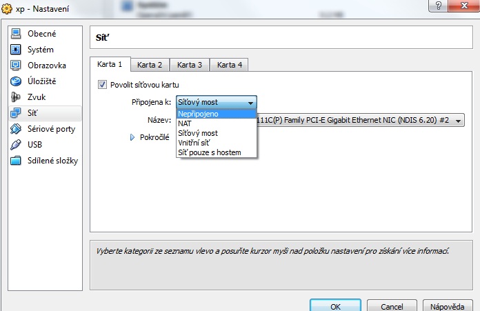 ja sem ji neprenastavoval jen se ptam co tam ma bejt tak tam necham to co tam bylo ale stejne v virtual xp nejde net