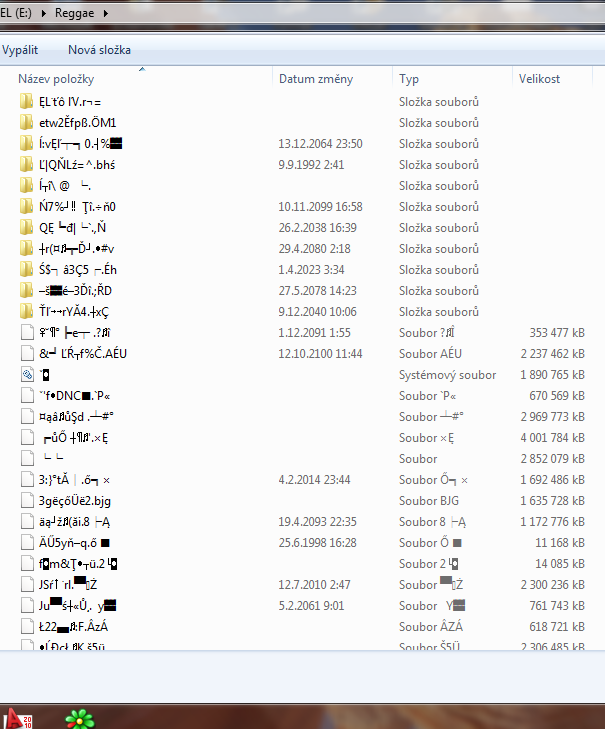 zdravim,mam problem ,dal jsem si do mp4 prehravace film,do slozky kde jsem mel i pisnicky, vsechno bylo v pohode ,na film jsem se podival,atd...,a ted najednou,v te slozce do ktere jsem dal ten film se objevily desitky nesmyslnych souboru (nejake klikyhaky..) ,bohuzel se mi smazaly i vsechny pisnicky co byly ve slozce i ten film a zustalo tam misto toho plno tech kravin (viz obrazek)