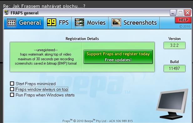 Já mám nejnovější Fraps 3.2, aby to nenahrávalo jenom 30 s. si to musím koupit. A jak nahráváš tu plochu ?