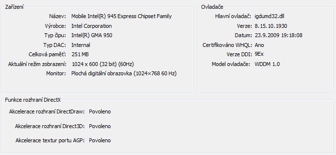 Zdravím.Mám problém s EEE pc.Když na nějakou dobu vypnu monitor a pak ho zase zapnu, tak se mi to celý tak na 1-2 sekundy zasekne a pak to blikne a ukáže níže uvedenou tabulku.Podle mě to je novým ovladačem na grafickou kartu, protože než jsem ho stáhl, běželo to normálně.Máte s tím někdo nějaké zkušenosti?Nebo víte co s tím?Předem díky za odpověď.(Win 7 ultimate 32 bit)