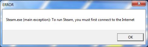 Dobrý den, mám nový notebook a když jsem si chtěl nainstalovat Steam ve kterém mam zakoupenou hru Counter Strike 1,6 tak jsem se bohužel zasekl po instalaci Steamu. Když jsem totiž chtěl Steam spustit, vyskočila mi Aktualizace Steamu(viz. příloha),to nění nic zvláštního, ale poněkud mě zarazilo to že se dlouho nic nedělo a nakonec vyskočila chyba (viz. příloha 2): Steam.exe (main exception): To run steam, you must first connect to the internet.