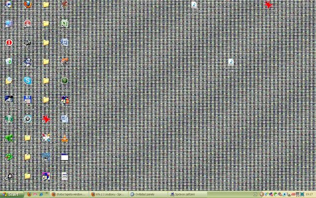 Zdravím, mám problém s PC. Poslední dobou se mi často stává, že po zapnutí počítače z hibernace se mi místo tapety zobrazí skvrnitá plocha (PrintScreen posílám v příloze). Čtverce se stejnou strukturou se pak zobrazují i po kliknutím pravým tlačítkem myši, objevují se i v Mozille, Irfan View, antiviru a dalších programech. Po restartu to vždy zmizí, za pár dní se to znovu objeví. Nevíte, čím by to mohlo být? Když neudělám restart a pouze změním tapetu, tak se po dalším probuzení chyba vrátí.