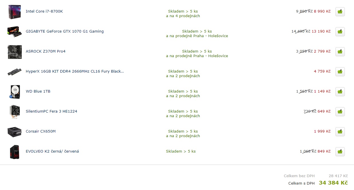 Nemůžeš koupit topič jako je i7 8700K a k tomu vzít tu nejlacinější desku co najdeš typu Asrock Pro4. Ta má zcela nedostatečné VRM pro takový CPU. Navíc ta kombinace není moc dobře vyvážená, když se kvůli tomu potom vleze jen GTX 1070 - za prvé, GTX 1070 se absolutně nevyplatí, když stačí přidat pár stovek a máš Ti úplně někde jinde a za druhé to je opět laciná edice od Gigabyte, která moc kvality úplně nepobrala. A ta case tomu už jen nasadila korunu, to je jakdybys to strčil do krabice od bot.