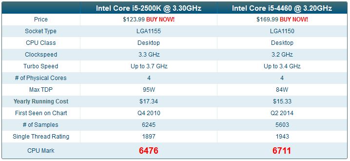 To je taky pravda, i5 2500K má patici 1155 a i5 4460 je pro patici 1150.