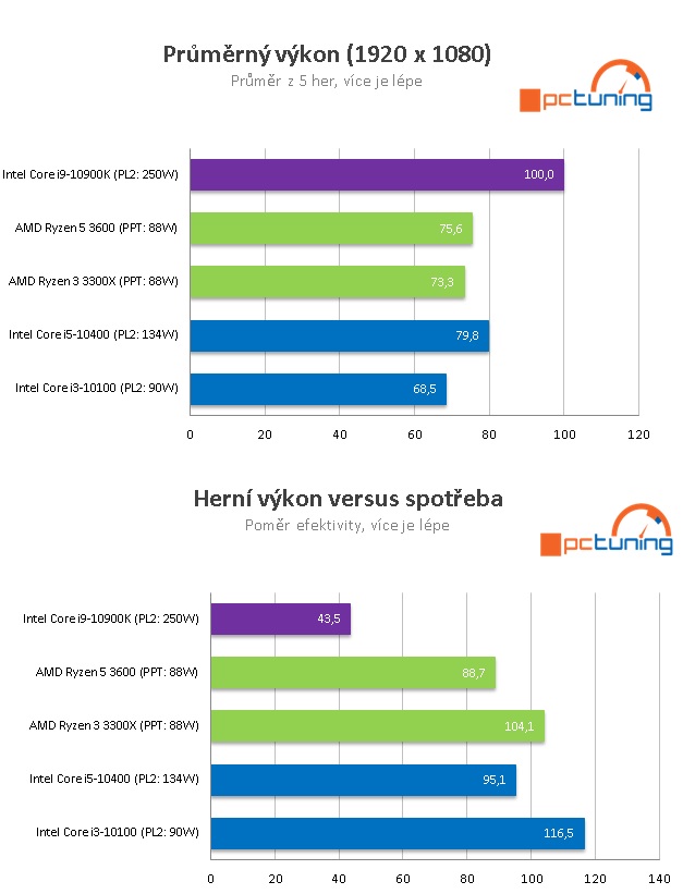 Jistě, seženu, stačí se podívat na ceny desek - mít jen procesor totiž k provozu tak úplně nestačí... Když seženeš i5 10400F, tak je cena stejná, jenže výkon je u Intelu nižší, takže Ryzen je rozhodně lepší. Když veme tu Z490, tak je výkonnější Intel, ale cena už je taky výrazně vyšší a přitom výkon se ti o to rozhodně už o tolik nezvedne.Karl8 píše:i5 10400F je na CZC za zhruba 4200Kč už asi měsíc, kde seženeš ten ryzen 5 3600 levněji ?Michael850 píše:Jelikož Ryzen 3600 seženeš o něco levněji než i5 10400F, tak je vítěz jasný - tady opět Ryzen.