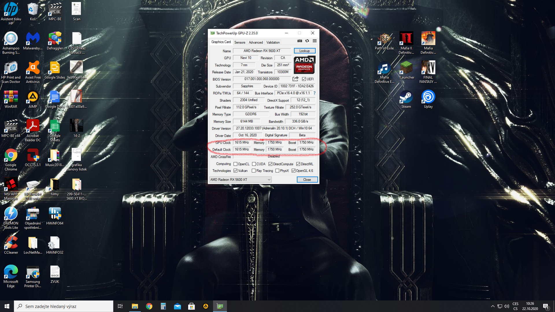 To ano, ale jak zjistím, jaká byla původní verze BIOsu?? To označení mně nic neříká. Každopádně Update už jsem udělal, takže je to v cajku. Karta běží pěkně ve hře Final Fantasy XV, akorát v Mafia 2 Definitive Edition se asi ve 2 misích propadlo FPS z běžných cca 100 na 15 a běžela tak hra cca 2 min. Jedná se o 2 mise kde se hodně střílí, ale to je trochu mimo téma. Možná, že to bude ale chyba hry, Doufám.