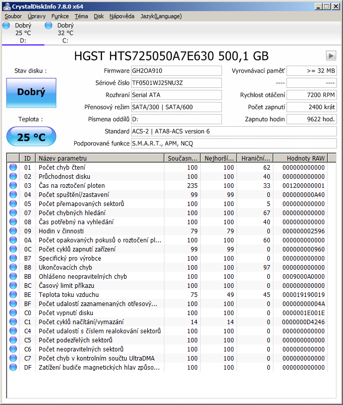 A však proto sem i píšu, sice nemám srovnání v desítkách kusů, všechny HDD, co jsem kdy koupil (SG), tak zatím zaplaťpánbůh jedou (pokud jsem je neprodal), ale ze 3 notebooků, které jenom leží na stole, jsem musel měnit právě 2 HGST, v tom posledním je nějaké WD, které má natočeno už 2x nebo 3x tolik hodin, než měly ty HGST, které se museli nahradit SSD, ne kvůli statusu Varování ve smartu, ale rovnou Špatný.