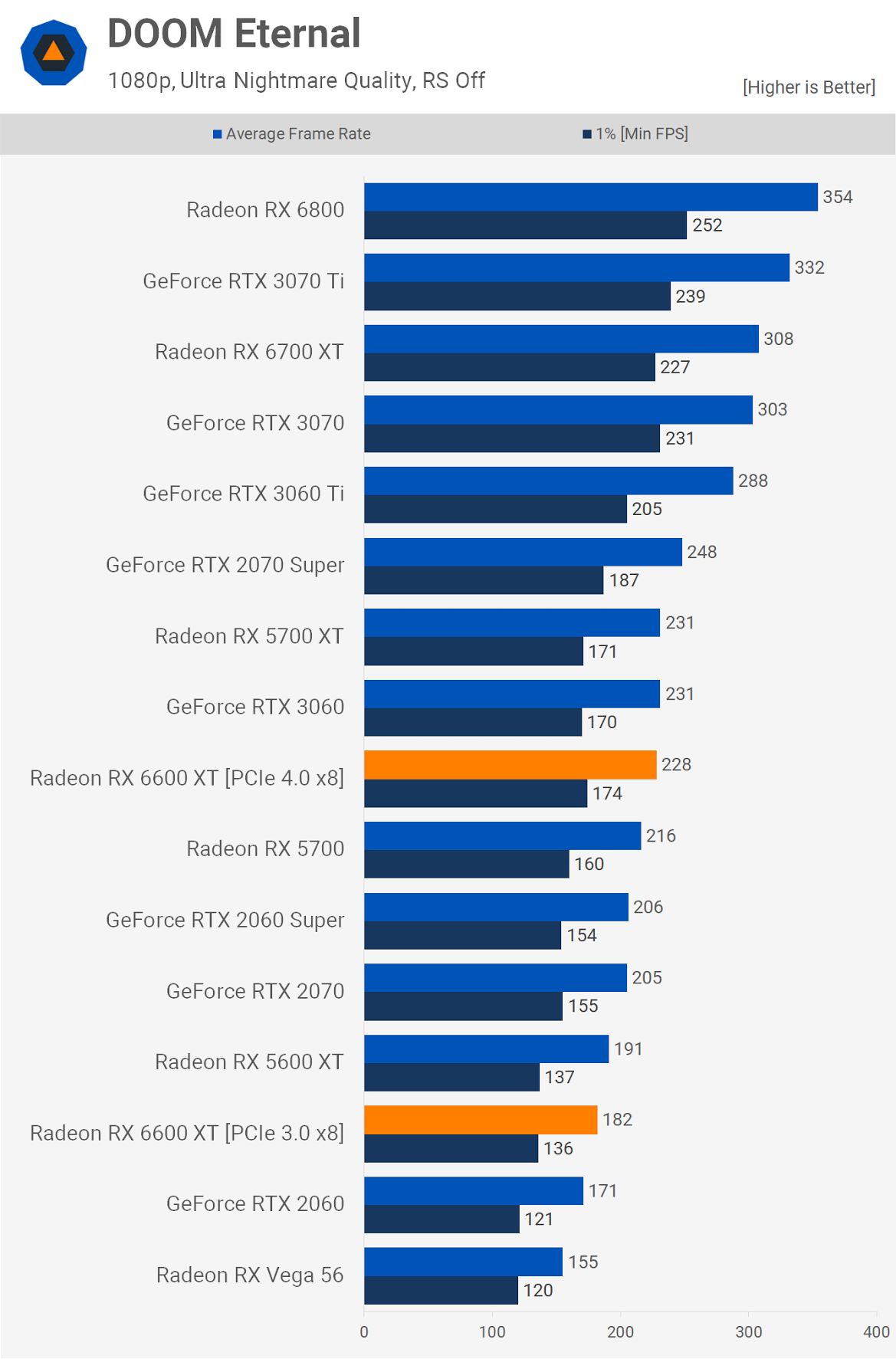 Jen horší to může být s tím výkonem v systémech jen s PCIe 3.0, kvůli aktivním jen 8 linkám (což asi stačí v případě 4.0 u slabší karty optimalizované hlavně na FHD, ale už ne s 3.0) už může ta propustnost být dost malá a někdy může být rozdíl ve výkonu i dost fatální, co se tak dívám, třeba v Doom Eternal na to dost náročné...Docela mazec. Zrovna v této hře se 6600 XT ani normálně moc nedaří proti RTX 3060 a takhle to hitne ještě pak takový masivní drop kvůli PCIe sběrnici, že to skončí i pod předchůdcem 5600 XT, tak to se úplně nepovedlo...