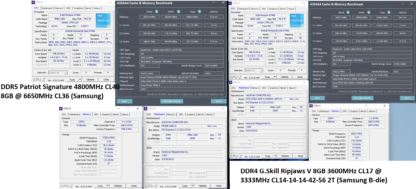 Srovnávací sestava s DDR4 byla stejná pouze jsem použil deska Asus ROG Strix Z690-A Gaming Wifi D4 společně s G.Skill Ripjaws V 3600MHz CL17 (Samsung B-Die).