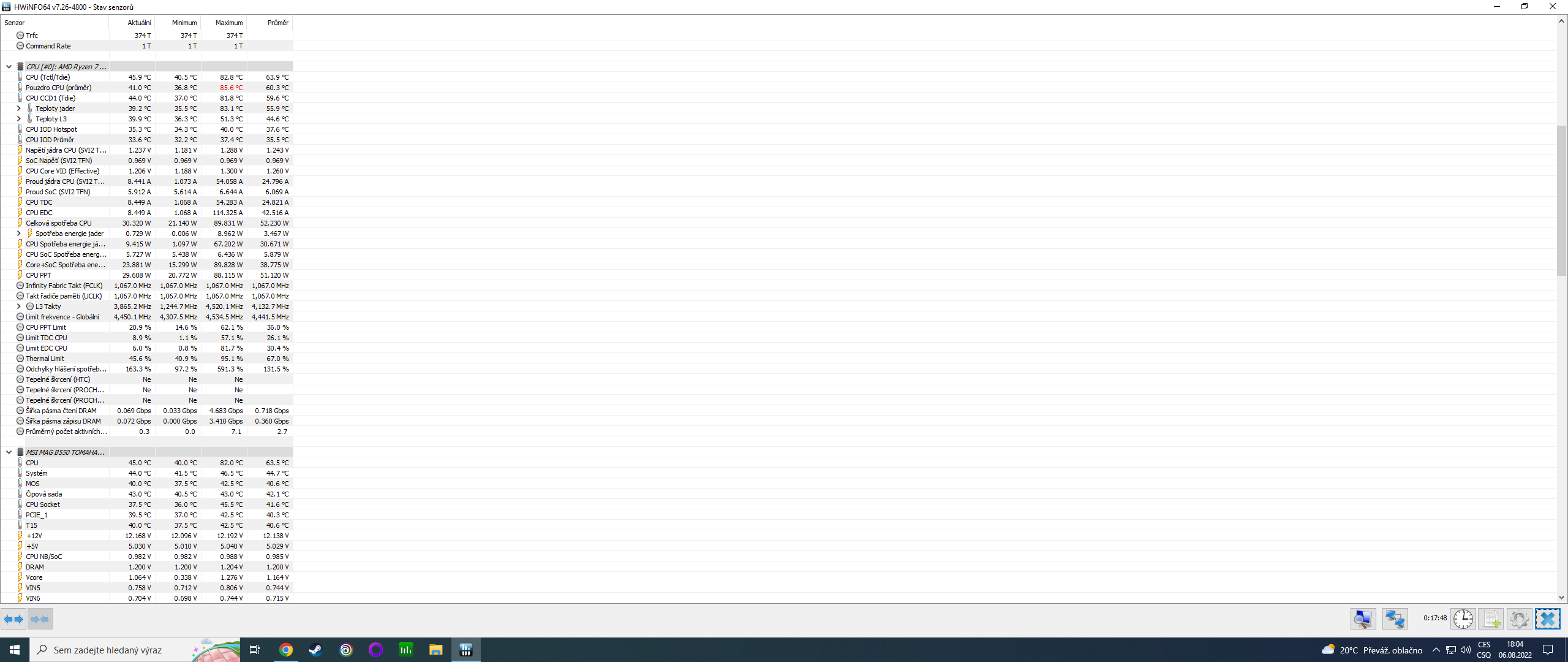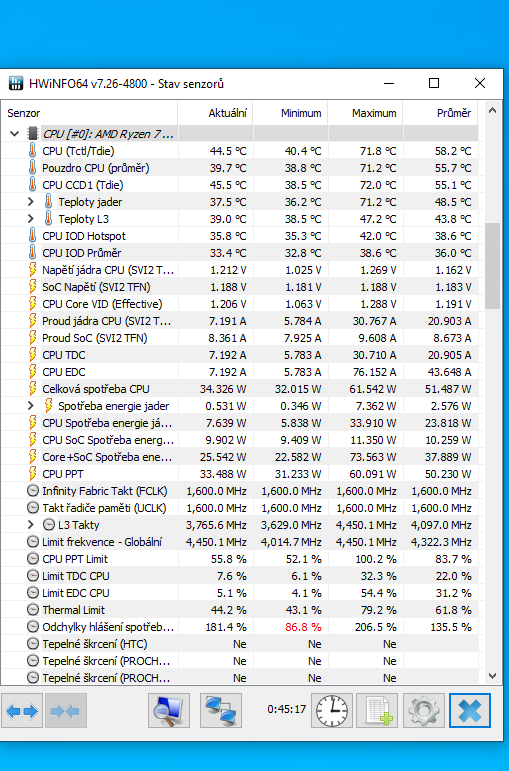 Nevím jaký ty hodnoty mají být pro AMD Ryzen 7 5800X3D,