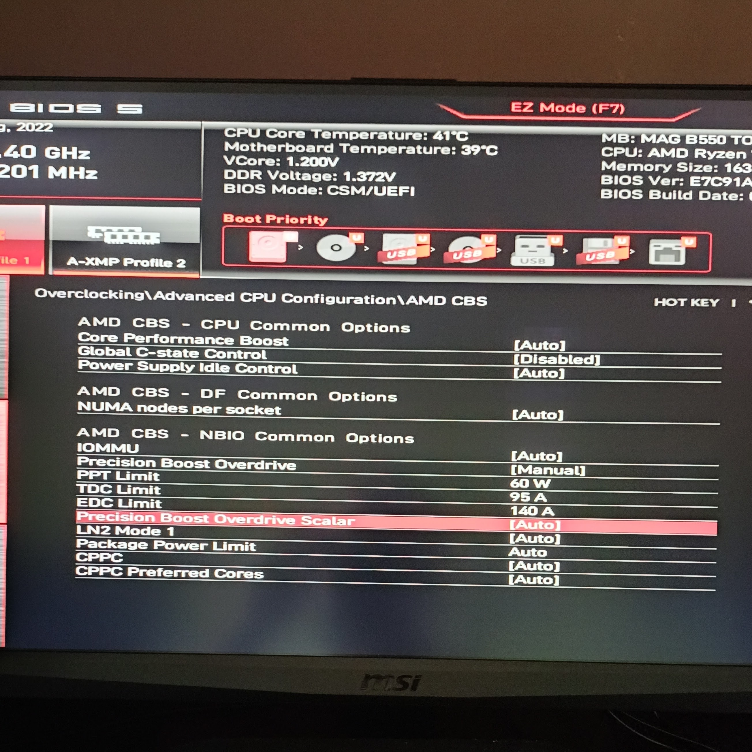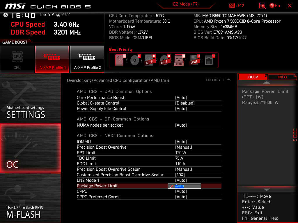 Standardně pro AM4 u 105W je nastavený : PPT: 142W
