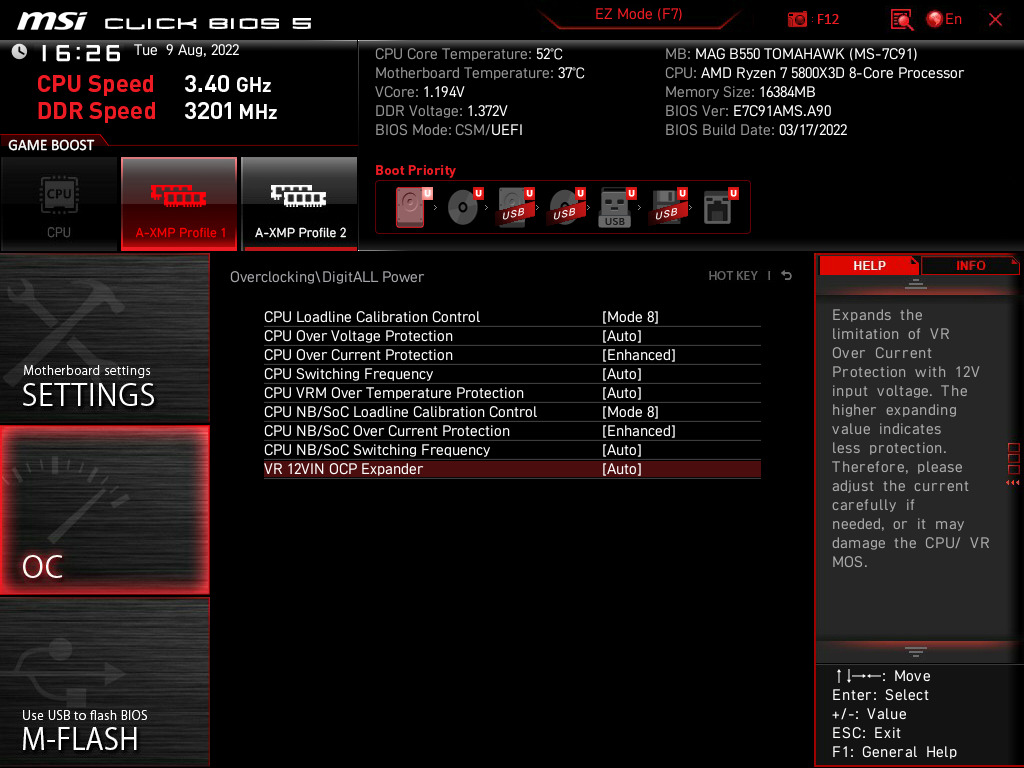 Jinak CPU over Current Protectin mám nechat Enhanced nebo Auto ?