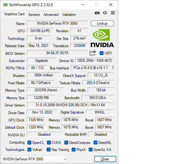 Gigabyte RTX3060 vs Gigabyte RTX3060