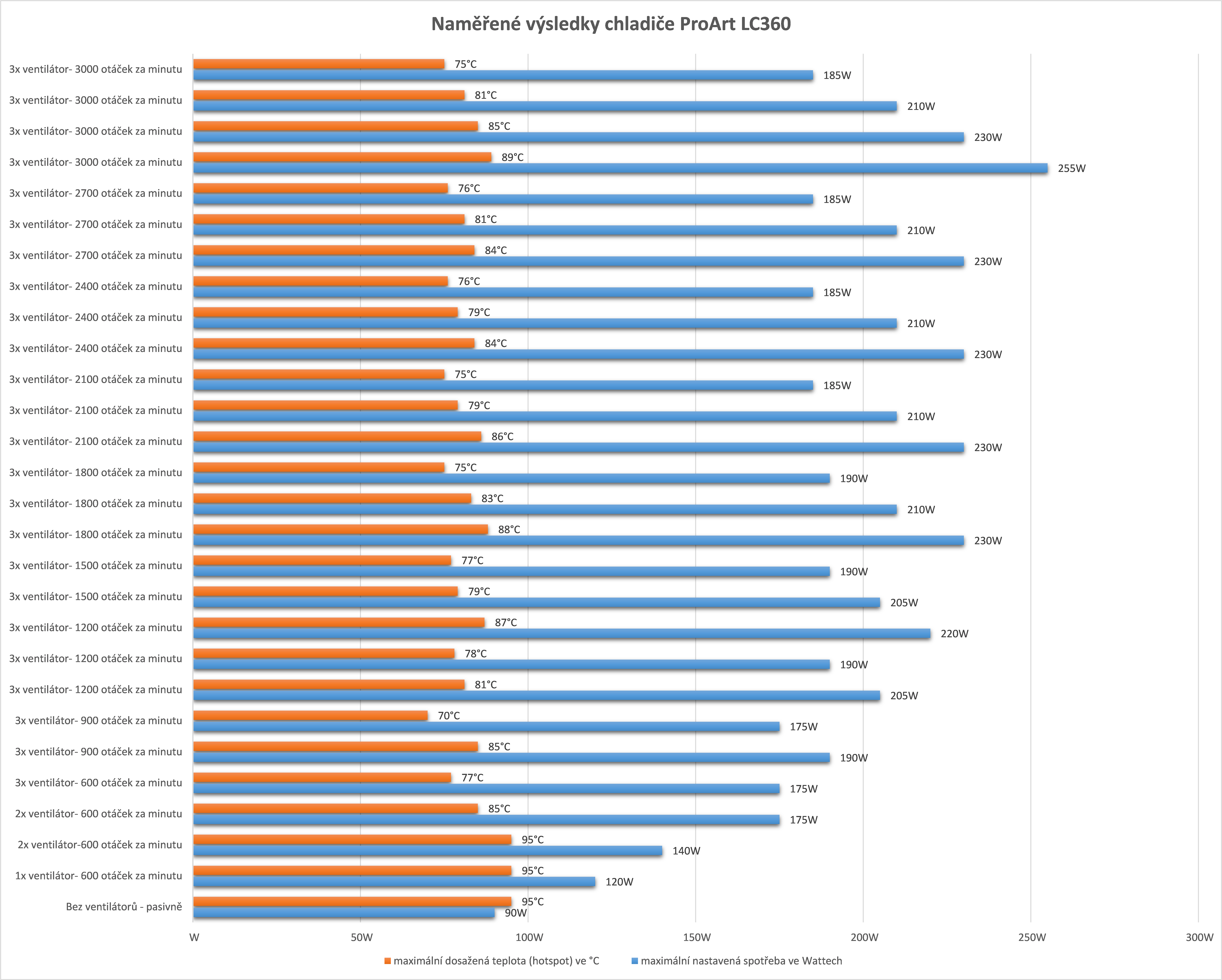 (výsledky s různým počtem ventilátorů Alphacool a fixním nastavením otáček ventilátorů)