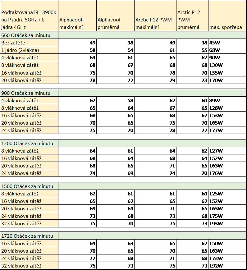 (Alphacool ventilátory byli o malinko lepší než ventilátory Arctic P12 PWM)