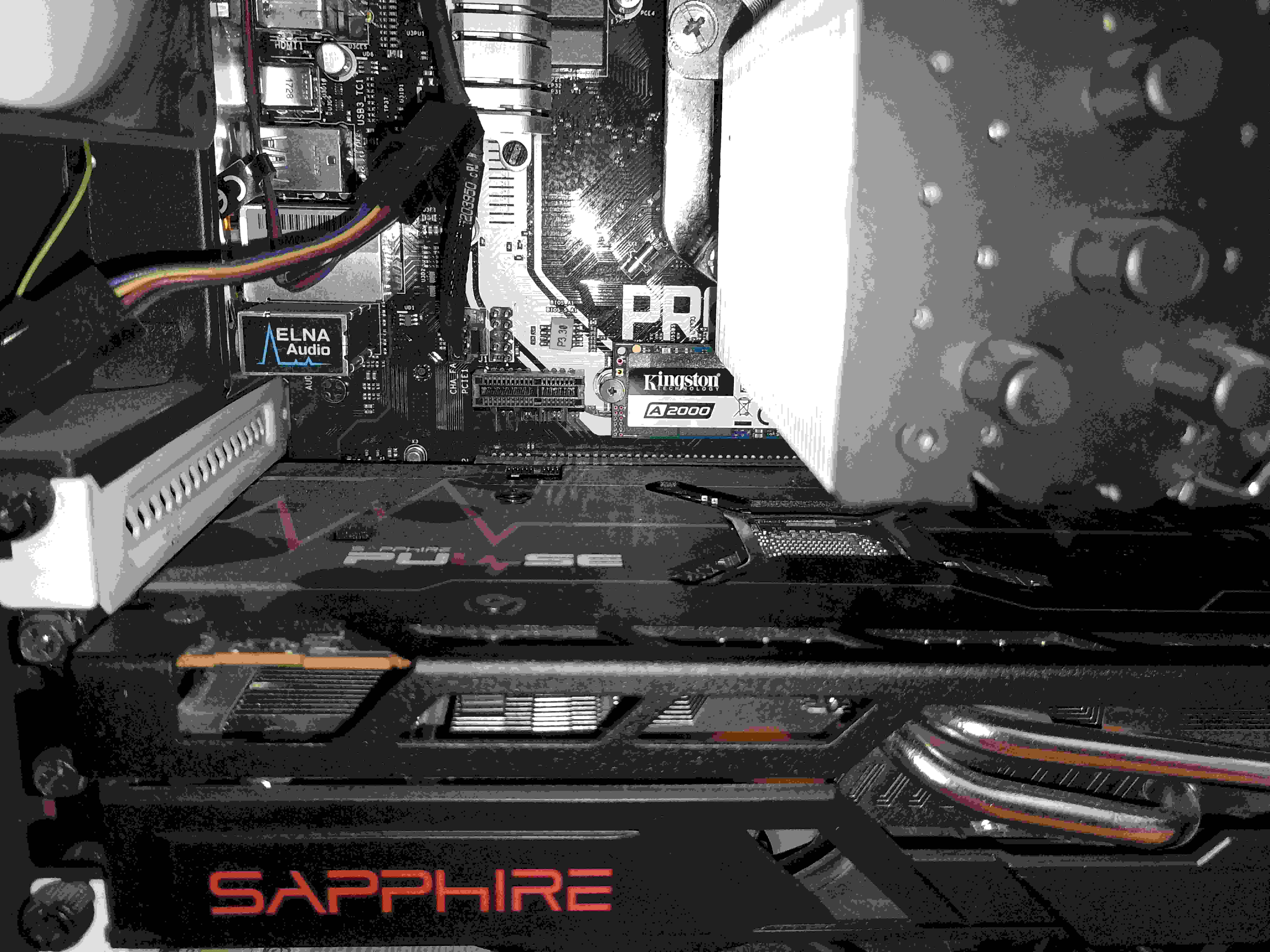 Muzes pouzit prodluzovaci kabel na PCI-E x16, ten se pod chladic grafiky vleze, a na konci bys mel SSD adapter, ale
