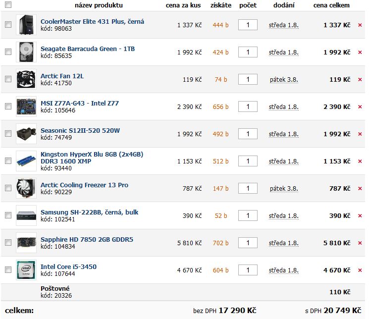 PS: A byl byste prosím ještě tak hodný a doporučil mi nějaký seriózní internetový obchod, kde si to mám nechat sestavit? Myslíte, že by bylo vhodné czc.cz?