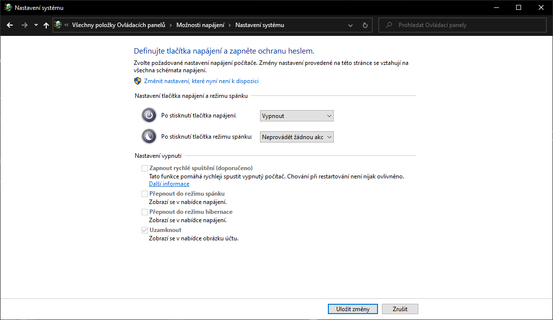 Dále automatické načítání profilu po restartu PC - prvně si upravte co je potřeba a profil uložte. Poté je potřeba ve Windows v možnostech napájení vypnout rychlé spouštění PC a nepoužívat režim spánku, viz. obrázek. Po tomto mi už krásně profil zůstává načtený i po restartu PC s funkčními nulovými otáčkami a vlastní křivkou větráků/napětí/frekvencí.