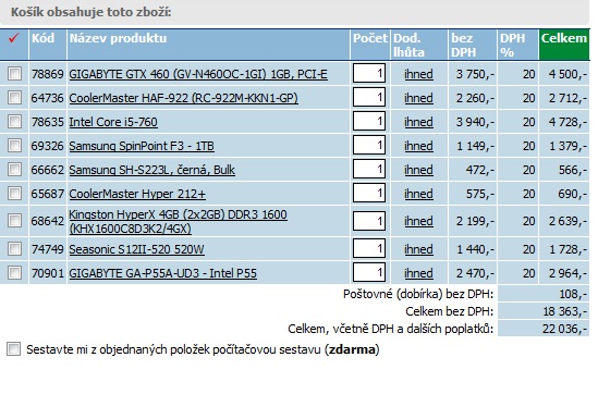 Však nemusíš spoléhat na úpravy hotových sestav. Normálně naskládej komponenty do košíku a je to....
