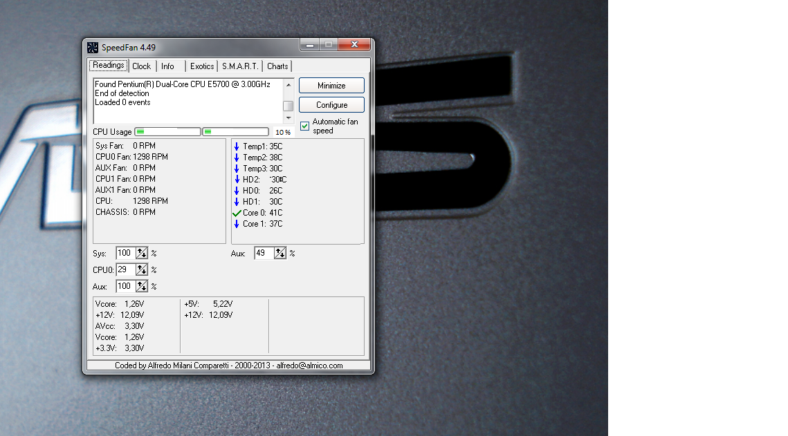 dále jsem viděl screenshot programu ktery mu ukazoval teplotu GPU CPU atd měl tam zhruba 35 Celsia