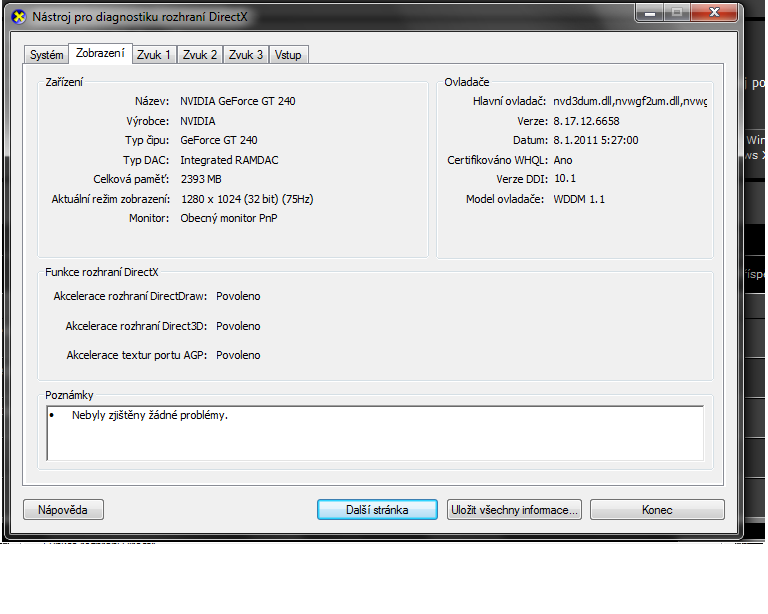 tak stáhni everest z odkazu kterej sem přiložil a dej sem screen, nebo dej start--->> spustit--->> DXDIAG a až to doběhne dej položku zobrazení
